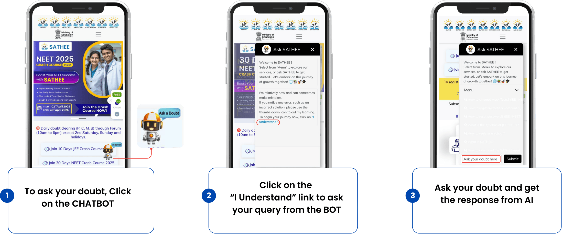 To ask your doubt, click on the CHATBOT